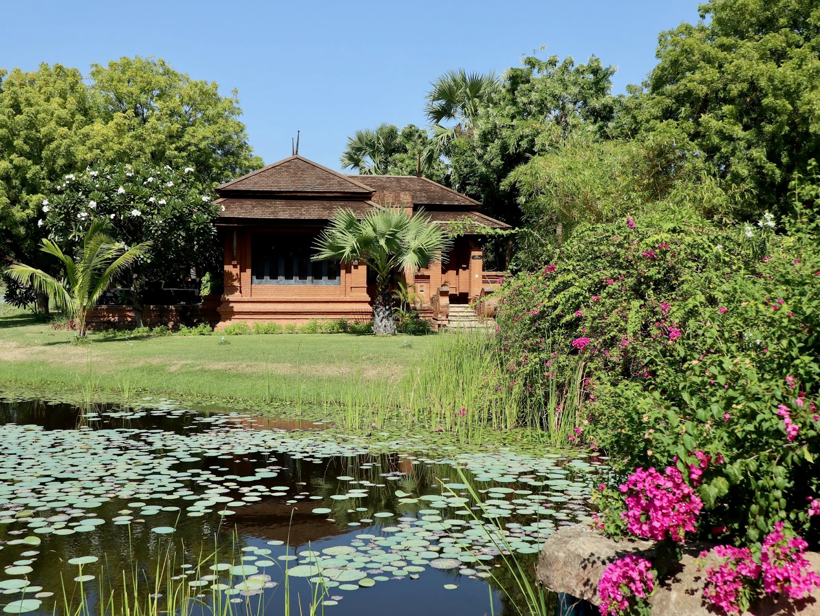 frente para um laguinho lindo e para algumas estupas do Parque Arqueológico de